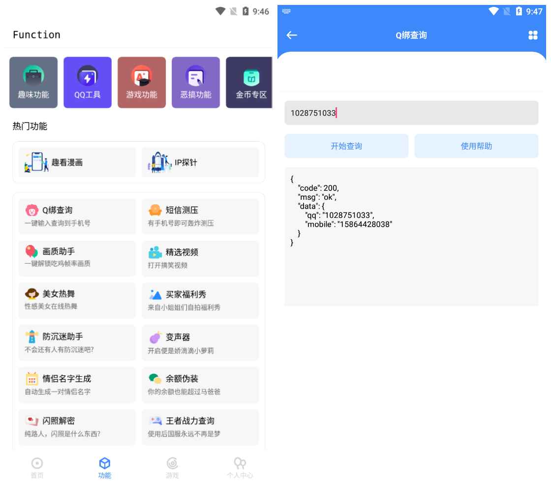 本次为大家分享的是随身助手v1.7 Q查绑/反查绑/IP探针等