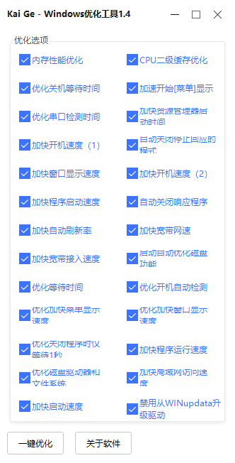 本次为大家分享的是Kai Ge - Windows优化工具v1.4